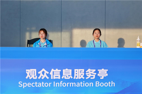 “志愿蓝”也是场馆中一道亮丽的风景线。赛事有序开展,都离不开他们的努力。这次赛事共有150名志愿者,在观众服务、票务服务、礼宾接待、赛事综合服务等16个领域提供志愿服务。每天早晨,志愿者都会准时到岗,完成各项工作。
