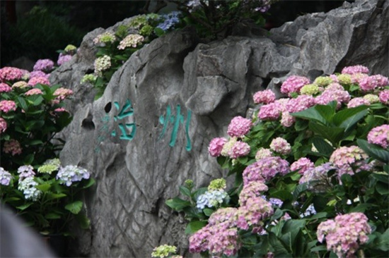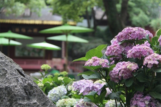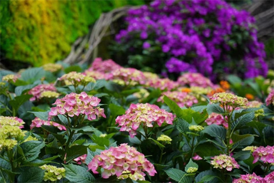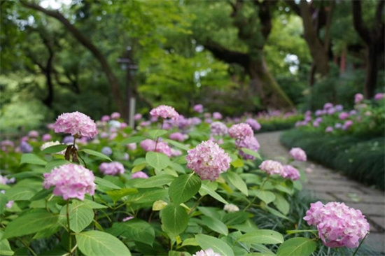 除了匠心打造的园林小品外,在名人小径区域,以片植形式结合原有地栽八仙花,打造面积为800㎡的八仙花花海,让游客置身其中流连忘返。