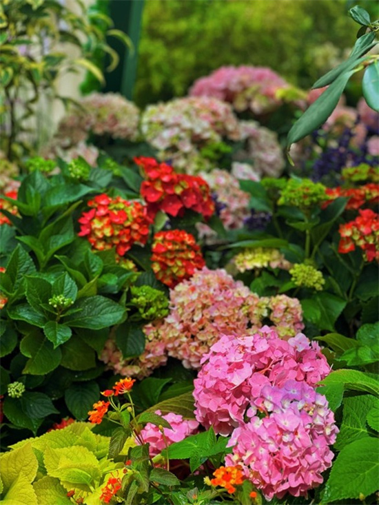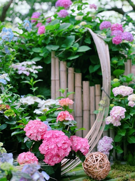 在展示区,120余种新优特品种八仙花惊艳亮相,包含专类园必配品种银边绣球、国际获奖品种的藤本绣球“白雪公主”和“精灵仙子”等,以及热门款“夏日之恋”“旋转木马”“咪咪”等。