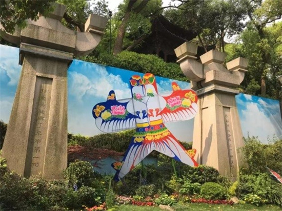 地有吴山美,东南第一州。小品《有美八仙》位于吴山景区入口“吴山大观”平台处,杭州西湖风景名胜区凤凰山管理处工作人员介绍:“此小品灵感来源于杭州亚运会核心图形‘润泽’,以原有石刻浮雕作为背景,利用园林枯枝与永生苔藓制作而成的西湖自然山水造型,将具有运动元素的亚运吉祥物作为小品前景,运用大量的八仙花‘摇摆乐’和三角梅、柳叶马鞭草、马利筋、超级凤仙等植物材料,形成具有冲击力的景观入口。”