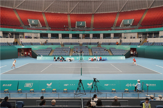 本次比赛设有男女团体赛,男女单打、双打和混双项目等多个项目,比赛首日的第一场比赛,国家队就在女子团体赛中亮相。马玥是国家队女子双打的一员,她介绍说,目前国家队还没有确立固定的搭档,参加本次比赛以磨合战术为主。对于这片球场,她赞不绝口:“场地太好了,打起来很舒服。”