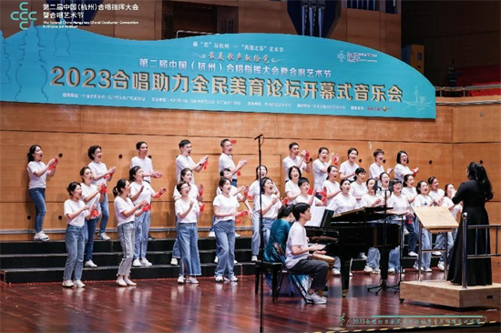 6月9日晚,所有参会指挥与杭州市民一起,在杭州大剧院观看本次论坛的开幕式重头戏之“迎亚运 善美育”杭州合唱艺术中心专场音乐会。