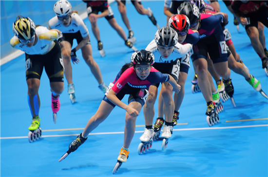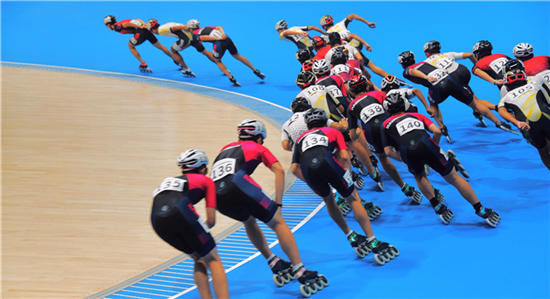 开幕式结束,经过工作人员争分夺秒地搬运物资、调整设备、人员检录,仅用时10分钟,就开始了第一场轮滑赛事:男、女子10000米积分淘汰赛(决赛)。极短时间的切换让嘉宾和观众无须等待太多时间,即可欣赏精彩的比赛。最终,选手张振海和郭丹分获男、女子组最终的冠军。