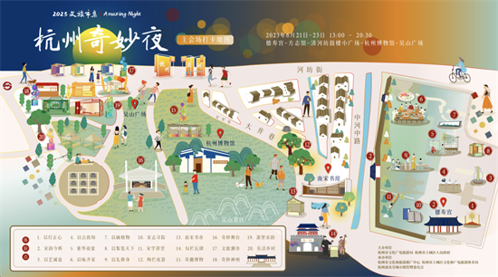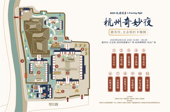 6月21日—6月23日,主会场5大活动区域,其中德寿宫采用预约制方式,市方志馆采用活动报名方式,杭州博物馆夜游采用预约制方式,其他区域采用开放式。