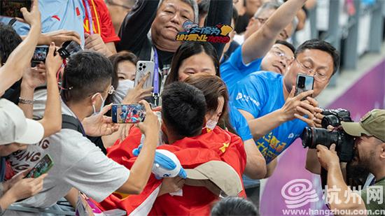 谢震业与陆敏佳激动相拥。摄影 方建飞