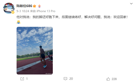 2021年的东京奥运会,谢震业在男子200米和4×100米接力上创造历史后,回国参加陕西全运会却遭遇滑铁卢,100米和200米双双无缘金牌。那也是陆敏佳征战的第4届全运会,结束后选择了退役,回到家乡成为了一名教练。而她对着镜头鼓励谢震业说“你没问题”,更是两人多年来互相支持的缩影。