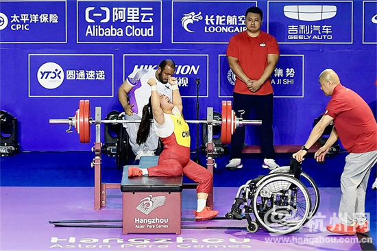 10月26日,在杭州亚残运会举重项目女子67公斤级比赛中,中国选手谭玉娇以141公斤打破自己保持的世界纪录,并夺得金牌。破纪录后的谭玉娇来了个“谭式”怒吼。(王川 摄)