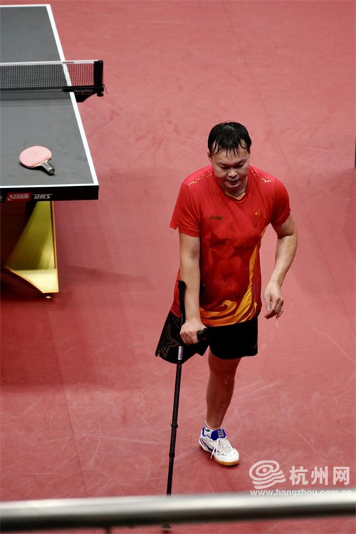 10月25日,乒乓球男子单打class7半决赛现场。中国队闫硕惜败,转身离开球场。身后是赛场,向前是生活。(林舒然 摄)
