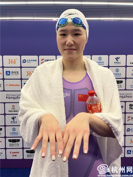 此外,“小叶子”大方地向记者展示手上的新装饰——水灵灵的美甲。“一直做不腻这个款式。”她透露,这是在亚运村预约做的,自己2012年伦敦奥运会时也做的这款,仿佛能带来好运气,明年(奥运会)准备换个金色。