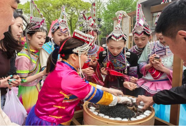 活动当天,在杭州市中心的凤凰里文创园非遗美食基地,平阳县青街畲族乡的竹编器具、彩带纹样、乌米饭香穿越群山阻隔,通过这座“非遗产业枢纽”直抵城市餐桌与客厅。让非遗活起来、农民富起来,浙江省非遗协会副会长浙江非遗产业服务专委会主任李克良在致辞中强调:“非遗是乡村振兴的灵魂。畲族文化承载着独特的历史与智慧,其产业化发展将为城乡共富注入持久动力。”