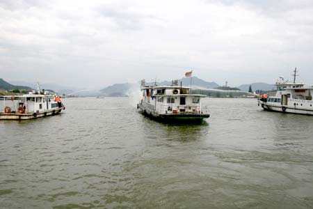 6月30日下午,新安江旅业和建德地方海事处在梅城七里扬帆码头的江面上举行了“2009水上消防应急演练”。演练的主要目的是检验旅游企业和海事部门在处理水上应急事件时的能力,演练进行了水上消防、乘客疏散、120救援等内容,半个小时的演练顺利按预案进行。