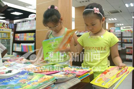 这是记者7月8日上午,在县城开元街上的新华书店里拍摄到的画面。据书店有关负责人介绍,随着暑假到来,不少孩子前来看书汲取知识。图为小朋友认真在挑选自己喜爱的图书。