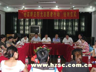 7月8日下午,团上城区委联合区司法局、小营街道在小营花厅开展社区矫正对象与志愿者结对仪式。仪式的开展意味着上城区社区矫正志愿者阳光行动在全市的首次正式启动,矫正对象来自小营和紫阳两个街道4名迷失青少年。香港理工大学、浙江理工大学社工专业学生志愿者、上城区青少年事务管理社团老师志愿者资源,以不同的角度相同的目的参与和关注本次活动。