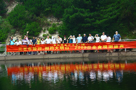 7月22日上午,罕见日全食在世界各地上演。由零网博客组织的近30名博友相约大明山,在海拔1200米的大明湖畔见证这一天象奇观。