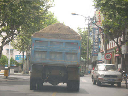 近日,有关部门出台了《建德市建筑工地文明施工管理规定》。该文件第十二条明文规定:建筑工地运输车辆的车厢应确保牢固、严密,并进行有效覆盖,严禁在装运过程中沿途抛、洒、滴、漏。然而,7月22日中午,记者在新安江城区环城北路看到,一辆运载砂土的大货车既超限又未进行覆盖,让有关规定如同虚设。