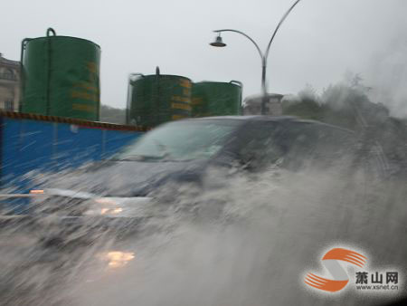 今天早上5点多,伴随着一阵阵轰鸣的雷声,雨水倾泻而下,再加上风的助力,天地间形成一张巨大的水幕。萧绍路、建设二路、风情大道等道路更是变成了“水路”,车辆所经之处,溅起高达2米多的水花。有些司机不知水面深浅,纷纷掉头撤退。路上的行人即使打着伞,也很难在风雨中前行。市民们无不感叹:这场暴雨,真的下疯了!