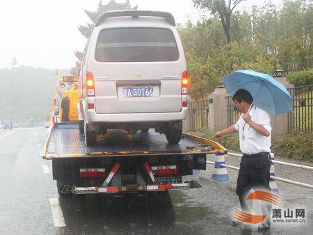 早上7点20分,区气象台发布暴雨黄色预警。记者在风情大道杭州乐园门口看到,一辆小型面包车也因排气管倒吸水而无法启动,杭州85451919抢修急救人员正在帮忙拖车。9点35分左右,记者又接到网友播报,说通惠路汽车城附近,有4辆车抛锚。