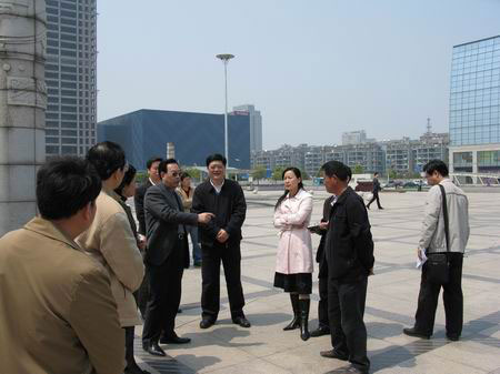 区委副书记、纪委书记邱卫星,区委常委、宣传部长郑桂岚调研庆春文化广场