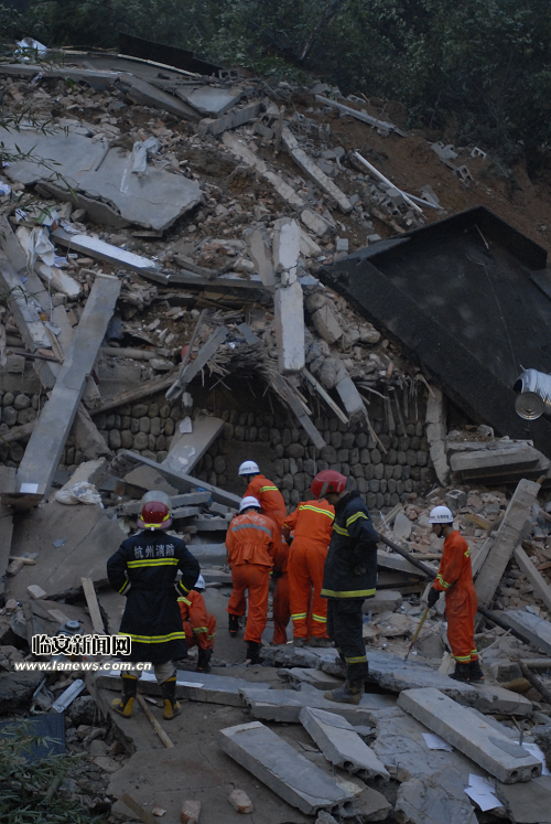 凌晨2时左右,蔡奇市长赶赴现场,在查看灾情现场后立即召开抢险工作会议,听取临安市委、市政府抢险工作汇报后指出:一要不惜一切代价营救被困人员,摸清被困人员底数,用生命探测仪进行搜寻,根据现场情况科学开展施救工作;二要抢时间,不惜一切代价抢救受伤人员;三要进行现场清理,疏散围观群众,保证施救工作正常开展,防止次生灾害的发生;四要以户为单位立即进行自查,开展全市地质灾害隐患点的排查工作;五要开展事故调查,分析事故原因。