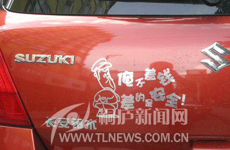 如今不少汽车车尾有涂鸦,如“俺不差钱,差的是安全”,“baby in car”等文字,但是从交警部门了解到,这样在车子上乱涂鸦是不允许的。