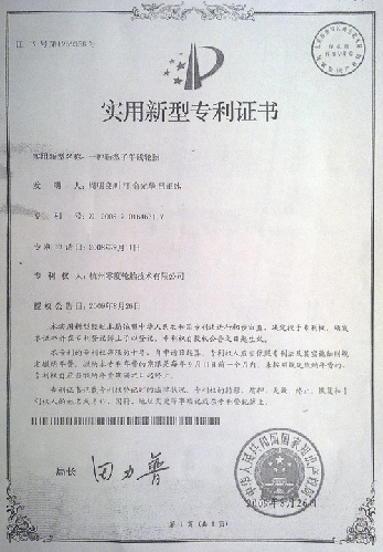 由浙江富轮集团单独注册的杭州零度轮胎有限公司研制开发的一种新型子午轮胎,8月26日获得中华人民共和国国家知识产权局实用新型专利,该专利号为:ZL 200820164631.7。