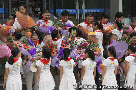 开幕式上,少先队员为革命前辈戴上红领巾并送上鲜花。