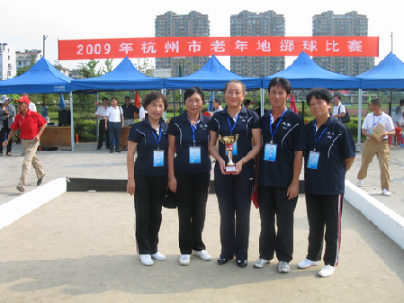 9月1—3日,商教苑社区地掷球队代表江干区再一次出征杭州市在富阳举办的地掷球比赛。作为去年市冠军商教地掷球队被编在A组第一,在一无训练场地二缺经费的条件下,队员们只能在地毯上进行系统化、技术化训练。社区文教干部系国家一级地掷球裁判,作为多年主持杭州市地掷球比赛的裁判员,数次带队战高温、冒酷暑去富阳热身熟悉场地。三位60多岁的大妈还差点中暑,队长叶尧生脸都晒成包公了,经过群策群力艰苦作战以小组第二名出线后,最后不敌“天时地利人和”的东道主富阳队无缘决赛获得第四名。但队员们发扬“胜不骄、败不妥”的顽强拼搏精神纷纷表示明年要更加努力争取在市第七届老年运动会上取得好成绩。 |