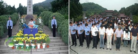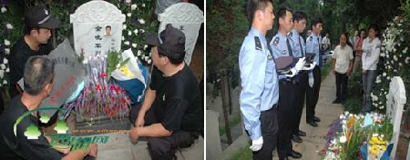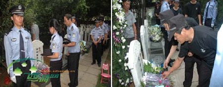 “你是一名真正的警察,你的生命增添警徽的光芒。你走了,走向永恒的辉煌……”最后,在为金晓军同志创作的一首《忠魂》歌曲和一支支黄菊花的护送下,金晓军同志的骨灰静静地安放在烈士陵园。 |