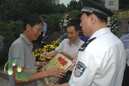 在命名大会上,西湖区公安分局向金晓军同志的家属颁发“革命烈士证书”。