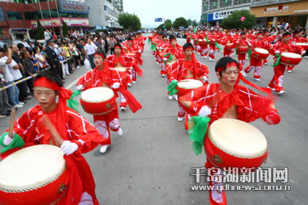 “呀,鱼怎么变成了龙?”“哇,露台上的演员怎么能稳稳地站着?”“看,萝卜、辣椒、玉米演得真像!”文化踩街的表演队伍从千岛湖广场出发,沿着新安大街、十字街,再到丁字街,沿路围观的群众不时地发出感慨声、惊叹声,各个笑靥如花。