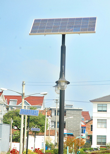图为金马村新安装的太阳能照明灯。 记者 金凯华 摄