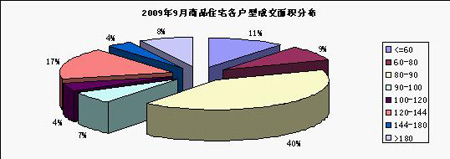 9月份,从全区商品住宅各户型的成交面积分布分析, 80-90平方米的小户型住宅,占总成交量的40%(上月10%),重回第一;120-144平方米占总成交量的17%(上月24%),位居第二;100-120平方米占总成交量的4%(上月16%),降幅比较明显。其它的住宅户型成交面积比重变化不大(详见附表2)。这些现象在今年8月份首次出现明显调整,今年以来一直表现稳定,也反映了目前全区住房户型供应结构比较合理。