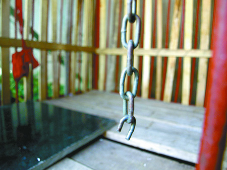 被偷狗人剪断的用来拴狗的铁链。 见习记者 张培 摄