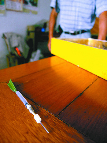 偷狗人用来麻醉狗的发射型针管。见习记者 张培 摄