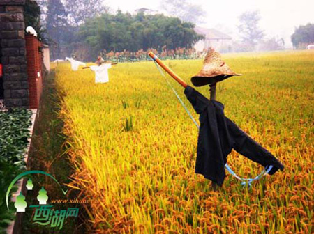 西湖网:收田里有“人”站岗不愿与麻雀为敌