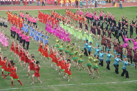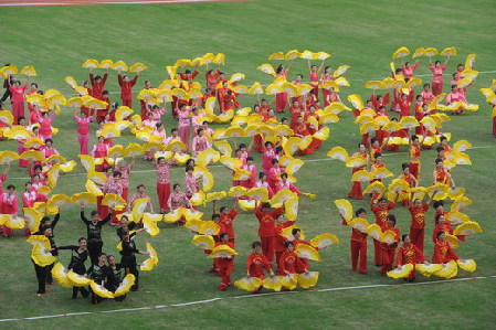 隆重简洁的开幕式后紧接着是精彩纷呈的文体表演,表演场面宏大、内容丰富多彩,博得现场观众阵阵热烈的掌声。