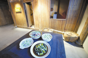 西溪湿地展馆内的“模拟农家”,触摸桌上的这些菜肴,墙上投影就会显示该道菜的制作工序。