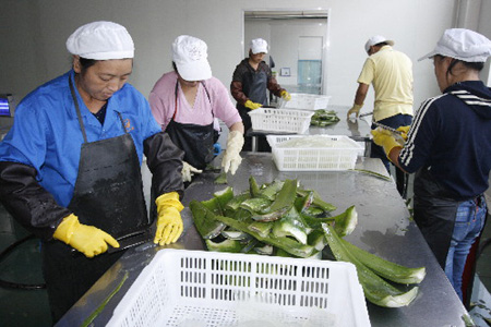工人正在加工芦荟