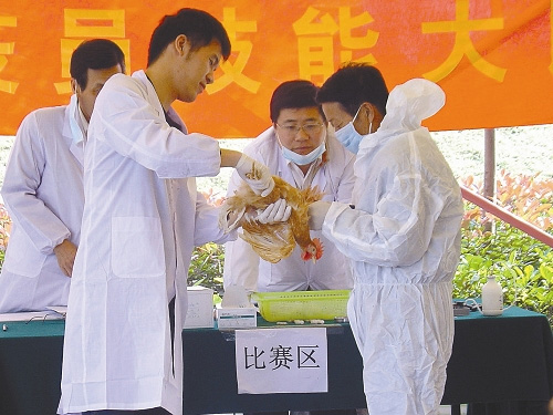 昨日,我区举行第二届动物防疫员技能大比武,来自全区各镇街的共52名动物防疫员大显身手。通过鸡血样采集和注射疫苗等展示了动物防疫员过硬的本领。