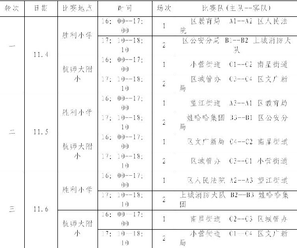 上城区第三届青年篮球比赛日程安排表