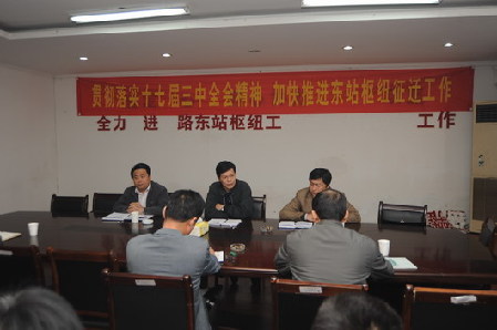 调研会前,徐立毅一行还前往铁路东站枢纽工程征迁指挥部检查彭埠社区征迁扫尾工作。在与指挥部相关负责人座谈会上,徐立毅强调,要充分认识征迁扫尾工作的重要意义,抢抓机遇加快推进城市化,以高度的责任感和事业心做好征迁扫尾工作;要进一步明确目标,坚持思想工作领先,做到和谐征迁;要加大协调力度,重视安置问题,加强工作力量,以深入学习实践科学发展观活动为动力,推进征迁工作又快又好圆满完成。