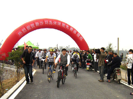 6日上午,2009富春江运动节的最后一个项目——2009长三角(新沙岛)露营大会举行了富春江单车赛、山地接力赛和环岛骑游体验活动。市委书记徐文光和数百名户外运动爱好者一起参加了环岛骑游体验活动,为选手们加油鼓劲。东洲街道党工委书记王龙华和市运休办副主任孙建楠陪同。