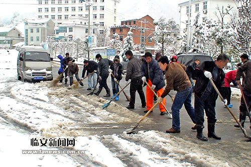 这一场雪来得仓促,气温骤降,一些地方道路结冰,给百姓生产、生活带来了一定的影响,行人和车辆无法正常出行。针对这些情况,各部门、各乡镇积极采取措施,应对雨雪天气带来的不利影响。当地政府通过电话、短信平台下发通知,要求村干部做好防雪工作,加大对危房、地质灾害点的监测力度,并强化值班制度,调整值班人员,充实值班力量,保证通讯畅通。其中新桥乡组织人员对下许村几处积雪较厚、危险路段进行了集中清扫,共清扫公路近800米。横路乡龙门岭海拔高,气温低,风大雪急,该乡乡村干部上山实地察看,同时对8户移民立即实施转移,并及时下山安置,经过几个小时的紧急转移,8户下山移民终于被成功安置到安全地段。