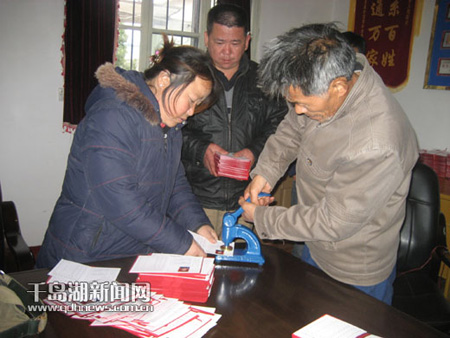 11月30日,我县制作完成第一批城乡居民社会养老保险养老金领取证,发放到村里。浪川乡19个村的村会计们一大早就赶到乡政府会议室喜滋滋的贴照片,盖钢印。当一本本红色的养老金领取证制作完成时,人们脸上都露出了幸福的笑容。