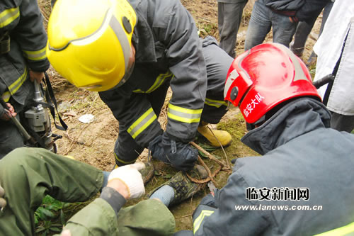 9时15分,临安消防中队队员赶到,他们掰了掰野猪夹,发现无法分开。老汉此时右脚乌青,疼得不住呻吟。“不能再耽搁了,用扩张器扩张!”带队的指挥员叶俊伟说。