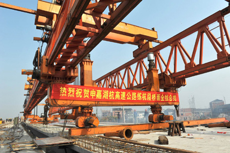 12月1日,随着申嘉湖杭高速公路余杭段高架桥面上阵阵鞭炮齐鸣,最后一片梁板稳稳的落在盖梁上,余杭段高架桥全线合拢,这也意味着整个申嘉湖杭高速公路的全线贯通。至此,申嘉湖杭高速公路余杭段跨绕城互通、京杭运河2号桥和高架桥梁板架设这三个重要节点全部顺利完成,扫清了桥面后续施工的最后障碍,为余杭段春节前建成通车奠定了坚实的基础。