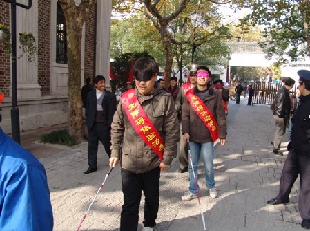 12月3日下午,杭州中山路南宋御街来了一群特殊的游客,他们是上城区建设局、区城管办、区行政执法局、南宋御街管委会、南宋御街商户的代表,只见他们有的坐着轮椅、有的拄着盲杖,还有的戴着眼罩,一边小心翼翼地走着,一边认真地议论着。