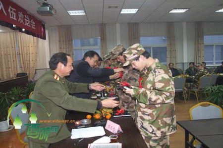 日前,蒋村街道在街道大会议室举行了2009年度新兵欢送会,并邀请各社区民兵连长以及新兵家长一同参加欢送会。