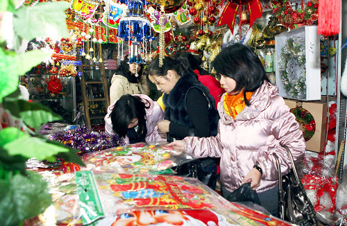 圣诞前夕,各种各样的圣诞礼品在各大市场热卖。通讯员 沈雷 摄