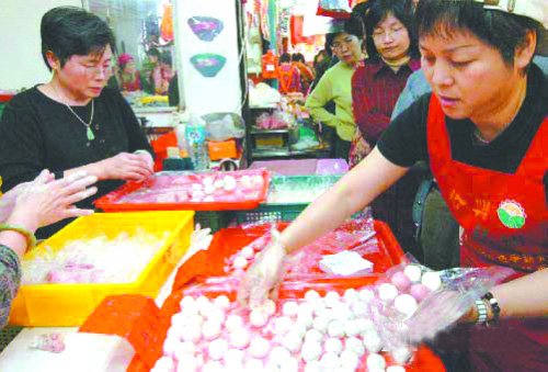 冬至,市民排队买汤团。(资料图片)